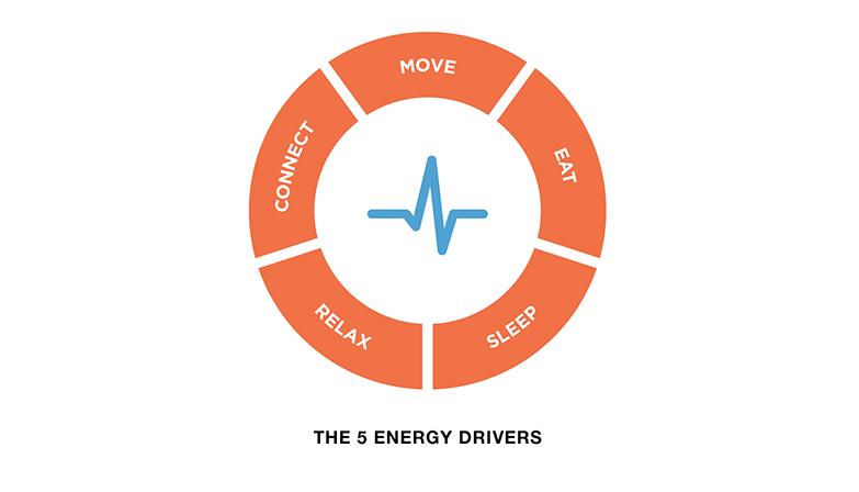 There are 5 drivers to generating energy: moving, eating, sleeping, relaxing, and connecting. When leaders make regular investments into those 5 drivers, they create a pattern that is self-sustaining. Below are the 5 drivers, along with some practical tips to leverage the driver to generate energy.